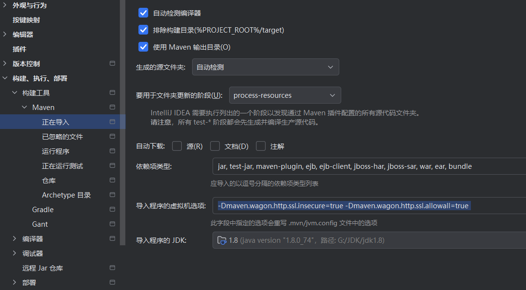 这里设置的忽略SSL证书验证,防止连不到阿里云的服务器无法自动下载依赖,而出现找不到依赖的错误