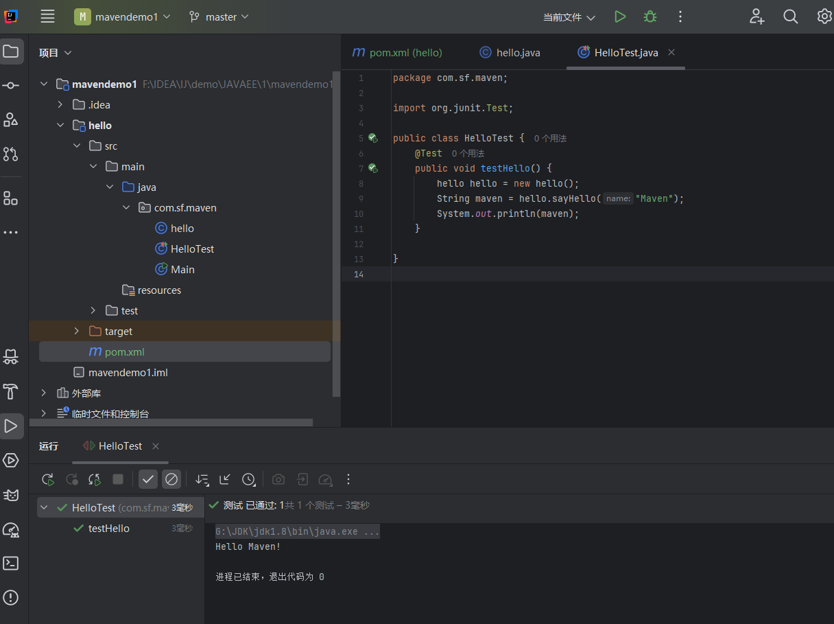 在src\main\java目录下新建一个类 hello.java 和 HelloTest.java